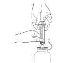 4- بطری را به طرف بالا بچرخانید و پیستون سرنگ را به بیرون بکشید تا سوسپانسیون وارد سرنگ شود.